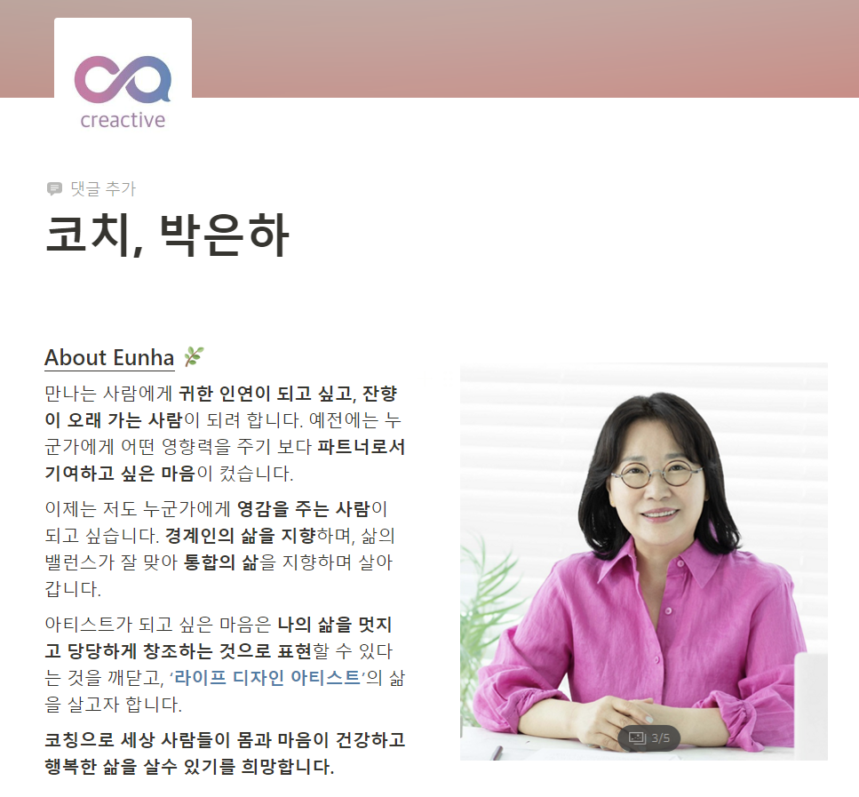노션에 그동안 코칭 커리어를 쌓아왔던 것들을 정리했습니다. 블루밍경영연구소에서 김상임코치님께 '인터널코치 육성과정'으로 코칭을 처음으로 시작한 것이 2015년 10월 16일이었는데, 8년의 시간이 흘렀습니다. 차근차근 전문코치로 성장하려고 노력했는데, 그 시간들을 정리해 보니 열심히 살았구나 싶어요. 저를 이렇게 성장시켜 준 김상임코치님, 그리고 함께하는 수많은 코치님들, 저와 함께 한 고객님들께 "감사하다"라고 인사드리고 싶습니다. 앞으로도 잘 지켜봐 주시고, 긍정과 발전적 피드백도 챙겨주시길 기대합니다~^^