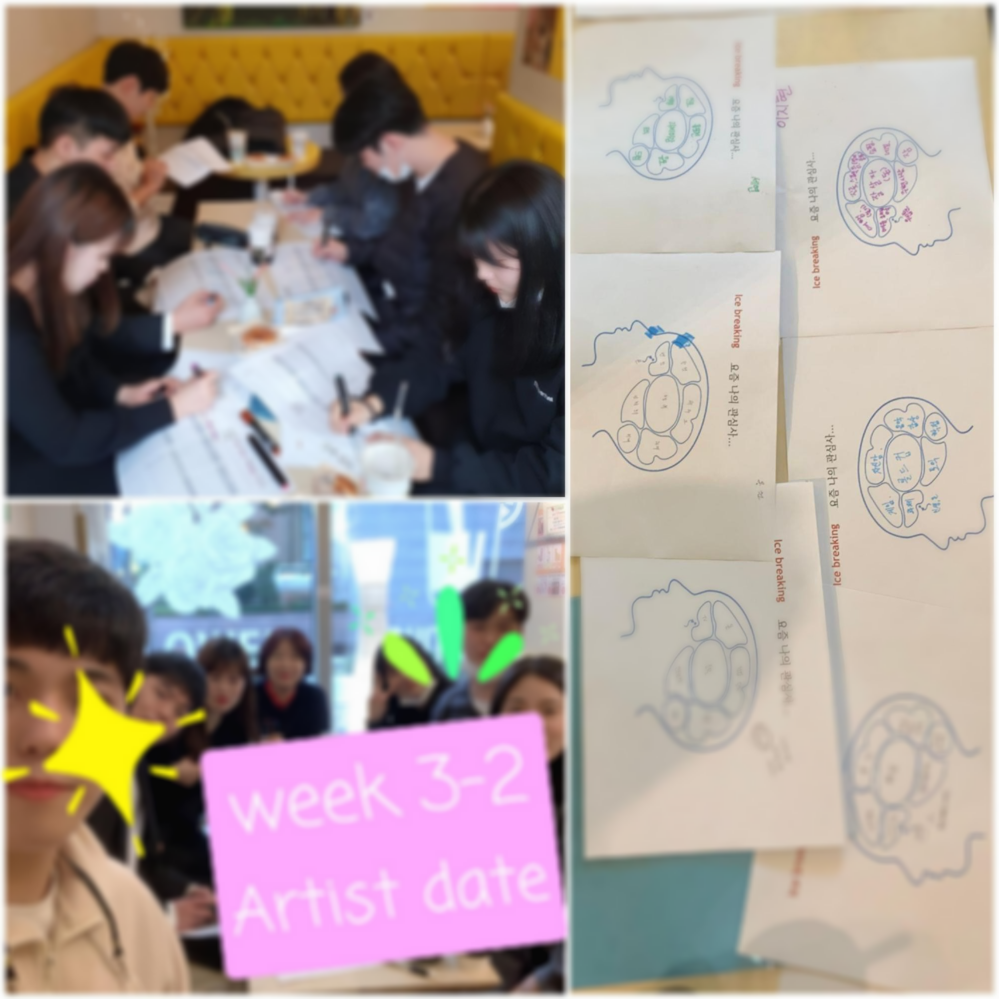 아이스브레이킹 겸 한 달간 어떻게 보냈는지 '뇌구조를 통해 보는 관심사'를 적고 발표하며 근황토크를 했다. 다들 진로와 기말과제 등에 관심이 많음을 볼 수 있었는데, 진로가 주는 생각들이 참 공통적이라는 생각을 했다. 커리어에 도움이 될 수 있는 커리어코치가 되어야 함을 새삼 느낄 수 있었다.