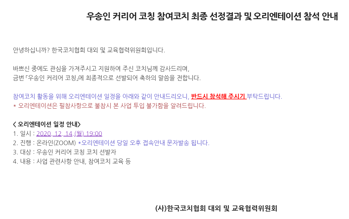 한국코치협외와 우송정보대학과 업무협약을 맺고 시작하는 우송인 커리어코칭에 코치로 참여를 했다.