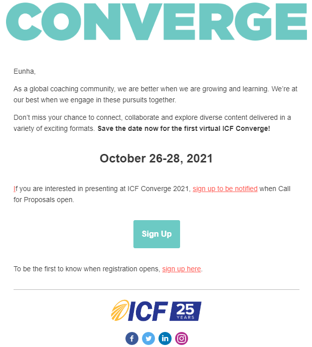 2021년엔 ICF에서 활동을 시작하고 싶었는데, 이렇게 온라인으로 행사 안내가 왔다.