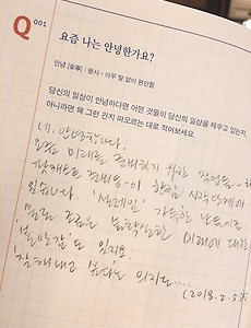 열정을 채우다/글쓰기 프로젝트39 Q003 나는 요즘 어떤 얼굴 표정으로 살아가고 있나요? 얼굴을 볼 수 있는 거울을 곁에 두고 자신의 평소 표정을 살펴보세요.어떤가요?A : 요즘 제 표정은 머리속이 복잡해 보이는 엉킨 표정처럼 보일 것 같아요.여유가 좀 더 있는 모습이면 좋겠다는 생각을 해봅니다. 몸에 힘을 좀 빼면 전체적으로 편안해지면서 표정도 여유로워 보이겠죠? 크게 쉼호흡 쉬어봅니다./2018. 2. 7(수) 자신의 얼굴 표정에 대해 느낀 점을 적어보고, 내가 갖고 싶은 모습은 어떤 것인지도 적어보세요.내가 갖고 싶은 그 표정을 한 번 지어보세요. 얼굴에는 당신의 삶이 담겨 있습니다.삶은 그 작은 표정 변화에서부터 시작될 수 있습니다. 2018. 2. 7. Q002 요즘 내가 주로 느끼는 감정은 무엇인가요? 3~5가지 정도를 생각해보세요.지금 느끼고 있는 감정을 잘 들여다보면 내가 진짜 원하는 것이 새롭게 보일 거예요.만약 당신이 좋아하는 감정 1가지를 골라 느낄 수 있다면, 어떤 감정을 고르고 싶나요?그 감정에 흠뻑 취했던 순간이나 상황을 떠올려보세요. 그리고 그 감정을 지금 이 순간 눈을 감고 느껴보세요. A: 글쎄요. 요즘 내 관심사는 9개월 뒤의 나의 모습이죠.그래서 그런지, 미래에 대한 호기심, 설레임, 불안감, 두려움 등 반대의 감정들이 공존하는 것 같아요.만약 1가지 감정을 고른다면, '기분좋은 설레임'을 선택하고 싶어요.새로운 것에 대한 도전은 늘 두렵지만 설레입니다. 그 기분은 뭐라 표현할 수 없을 만큼 좋습니다./2018. 2. 6(화) 늘 원한다고 생각만 했던 일을 실제 행동으로 옮길 기.. 2018. 2. 6. Q001 요즘 나는 안녕한가요? 안녕(安寧) : 명사 - 아무 탈없이 편안함당신의 일상이 안녕하다면 어떤 것들이 당신의 일상을 채우고 있는지, 아니라면 왜 그런 건지 떠오르는 대로 적어보세요. A: 네 안녕합니다. 요즘은 미래를 준비하고 있습니다. 새삼스러운 것은 아닙니다. 하지만 연초이다 보니 조금 더 몰입하게 되는 것 같습니다. 책쓰기와 팟캐스트 준비를 막 시작하고 있습니다. '기분좋은 설레임'이 가득한 날들이라고 할까요?물론 미래란 것이 불확실하기 때문에 '불안감'도 한 켠에 자리하고 있습니다. '잘해내고 싶다'는 의지와 다짐도 있지요. 그렇게 저는 안녕합니다./2018. 2. 5(월) 나의 일상이 어땠는지 잠시 멈춰 생각해보는 시간은 당신이 더 안녕히 살아갈 수 있도록 다짐하고 행동하게 해줄 거예요. 2018. 2. 5. 이전 1 2 3 4 5 다음 반응형