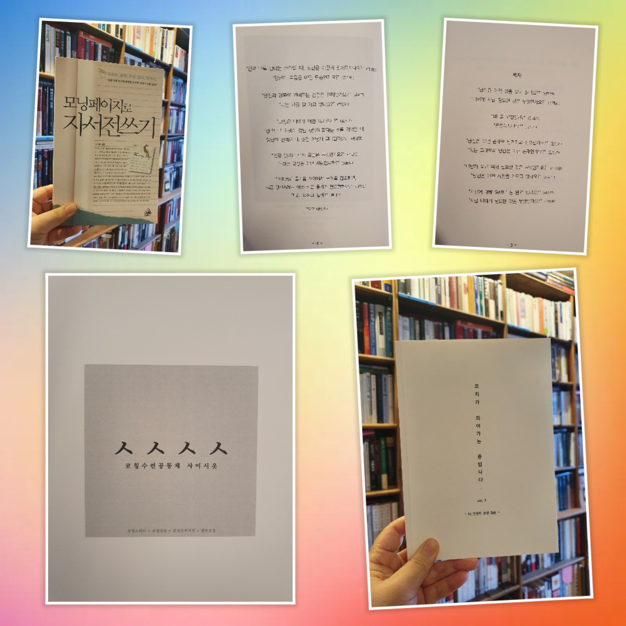 홍성향코치님과 사이시옷 멤버들과 함께 하는 24차 스터디의 결과물이 나왔다. <모닝페이지로 자서전쓰기> 프로젝트. 매일 아침마다 질문에 대한 글을 쓰는 연습을 하고, 각자의 질문에 스스로 답을 했다.