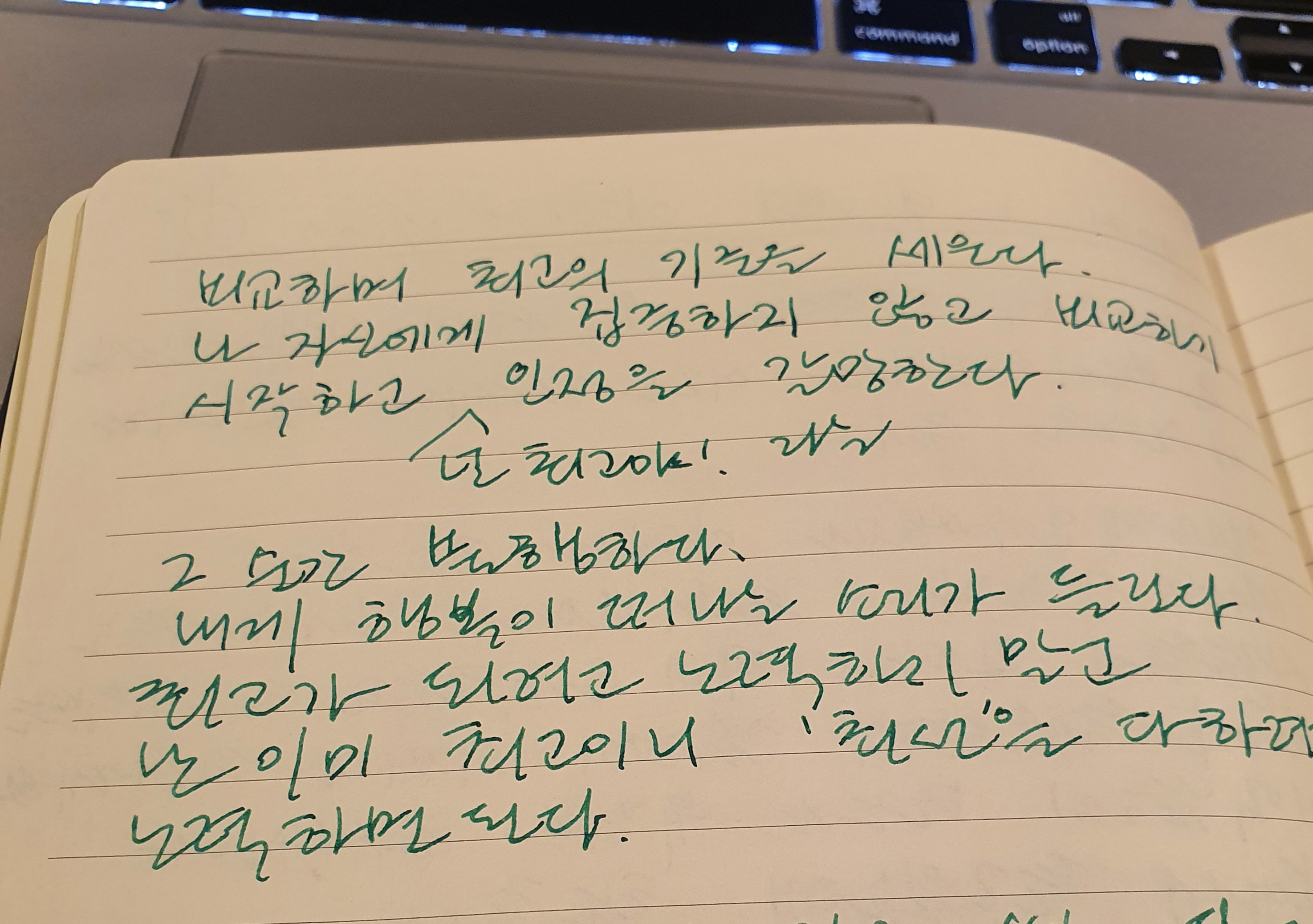 오늘 아침 원정혜 에콜스 요가 명상시간에 참여하며 느낀점을 모닝페이지에 담았다.